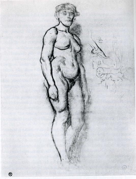 Wir bieten Ihnen eine handgefertigte Reproduktion auf Leinwand des berühmten Kunstwerks 'Frau stehend in Semi-Profil' von Henri de Toulouse-Lautrec, aus dem Reproduktionsmuseum.