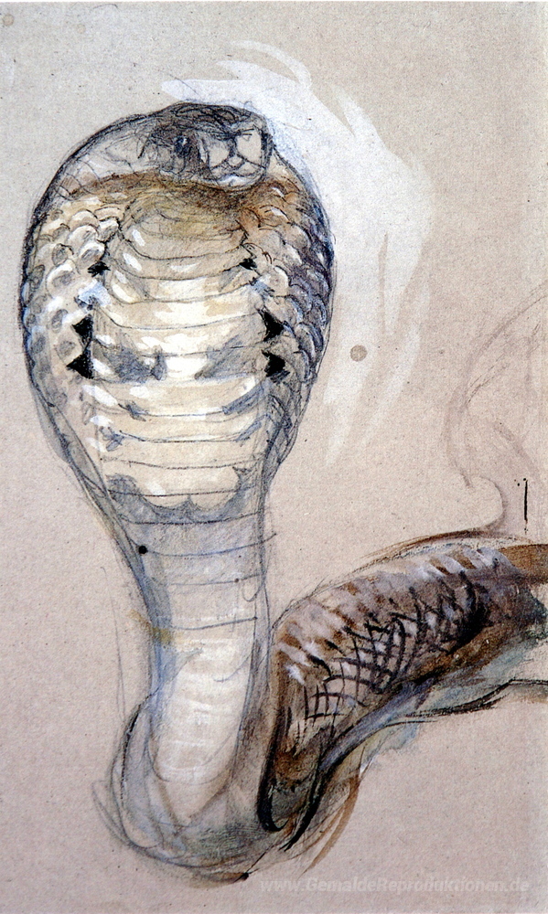 Wir bieten Ihnen eine handgefertigte Reproduktion auf Leinwand des berühmten Kunstwerks 'Full Face von Cobra' von John Ruskin, aus dem Reproduktionsmuseum.