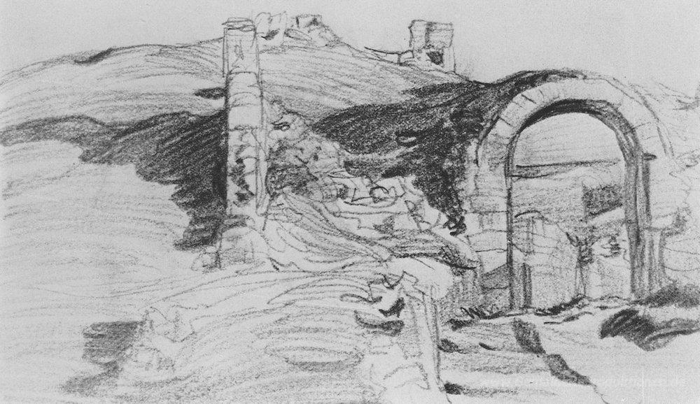 Wir bieten Ihnen eine handgefertigte Reproduktion auf Leinwand des berühmten Kunstwerks 'Gates im Turm' von Konstantin Bogaevsky, aus dem Reproduktionsmuseum.