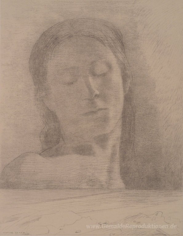 Wir bieten Ihnen eine handgefertigte Reproduktion auf Leinwand des berühmten Kunstwerks 'Geschlossene Augen' von Odilon Redon, aus dem Reproduktionsmuseum.