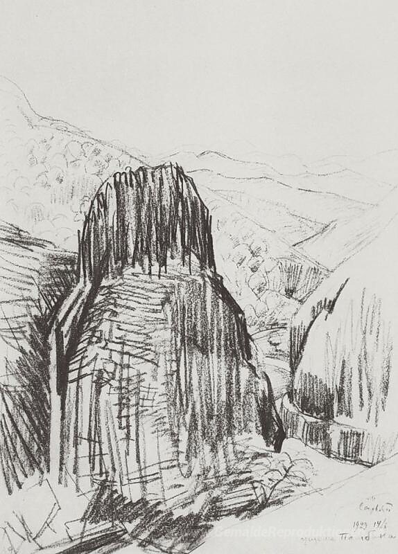 Wir bieten Ihnen eine handgefertigte Reproduktion auf Leinwand des berühmten Kunstwerks 'Gorge Pambak' von Martiros Saryan, aus dem Reproduktionsmuseum.