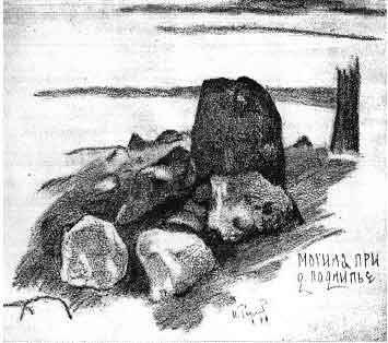 Wir bieten Ihnen eine handgefertigte Reproduktion auf Leinwand des berühmten Kunstwerks 'Grab in der Nähe Dorf Podlipie' von Nicholas Roerich, aus dem Reproduktionsmuseum.