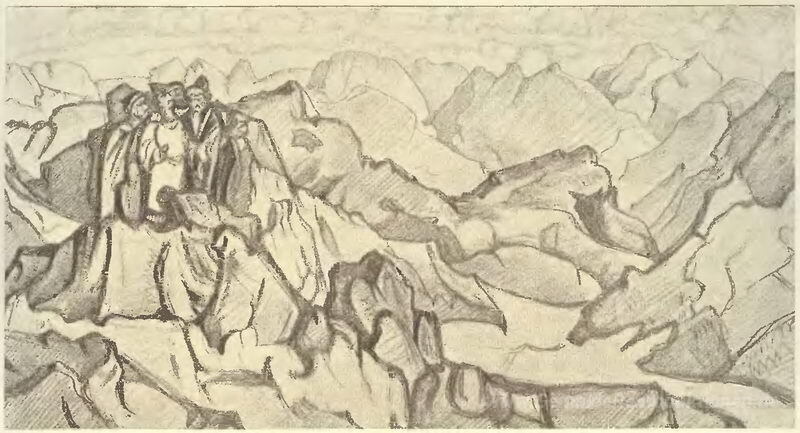 Wir bieten Ihnen eine handgefertigte Reproduktion auf Leinwand des berühmten Kunstwerks 'Grenze des König' von Nicholas Roerich, aus dem Reproduktionsmuseum.