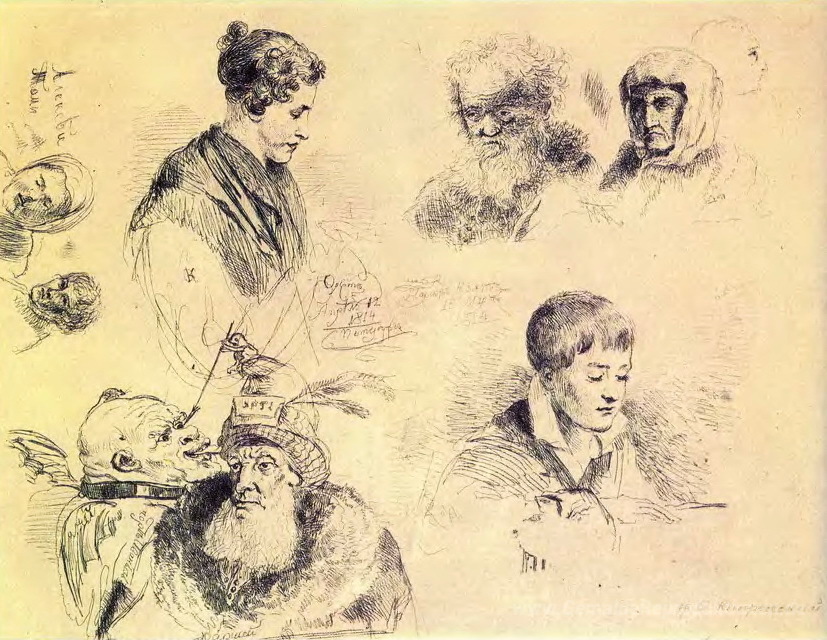 Wir bieten Ihnen eine handgefertigte Reproduktion auf Leinwand des berühmten Kunstwerks 'Griffonnage' von Orest Kiprensky, aus dem Reproduktionsmuseum.