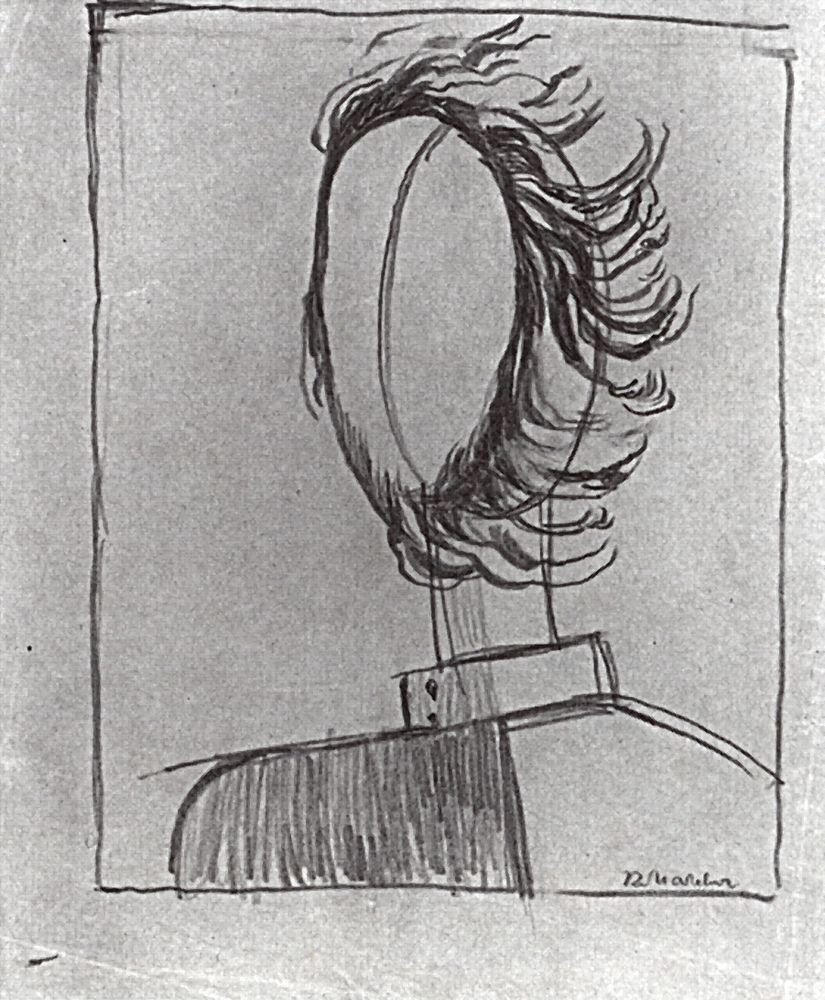 Wir bieten Ihnen eine handgefertigte Reproduktion auf Leinwand des berühmten Kunstwerks 'Herrenkopf' von Kazimir Malevich, aus dem Reproduktionsmuseum.
