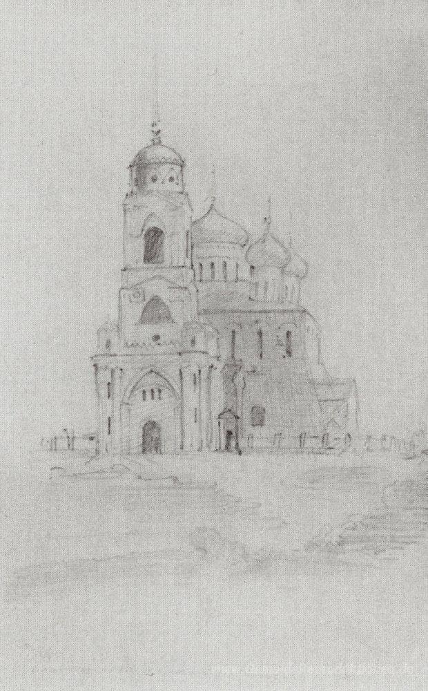Wir bieten Ihnen eine handgefertigte Reproduktion auf Leinwand des berühmten Kunstwerks 'Himmelfahrts-Kathedrale in Vladimir' von Vasily Polenov, aus dem Reproduktionsmuseum.