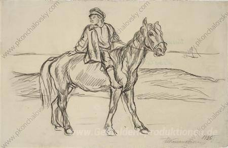 Wir bieten Ihnen eine handgefertigte Reproduktion auf Leinwand des berühmten Kunstwerks 'Ilmen-See. Der Junge auf dem Pferd.' von Pyotr Konchalovsky, aus dem Reproduktionsmuseum.