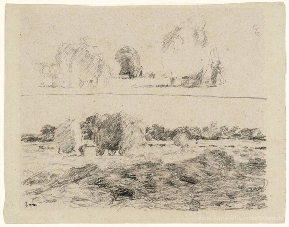 Wir bieten Ihnen eine handgefertigte Reproduktion auf Leinwand des berühmten Kunstwerks 'Im Hayfield: Zwei Studien' von James Charles, aus dem Reproduktionsmuseum.