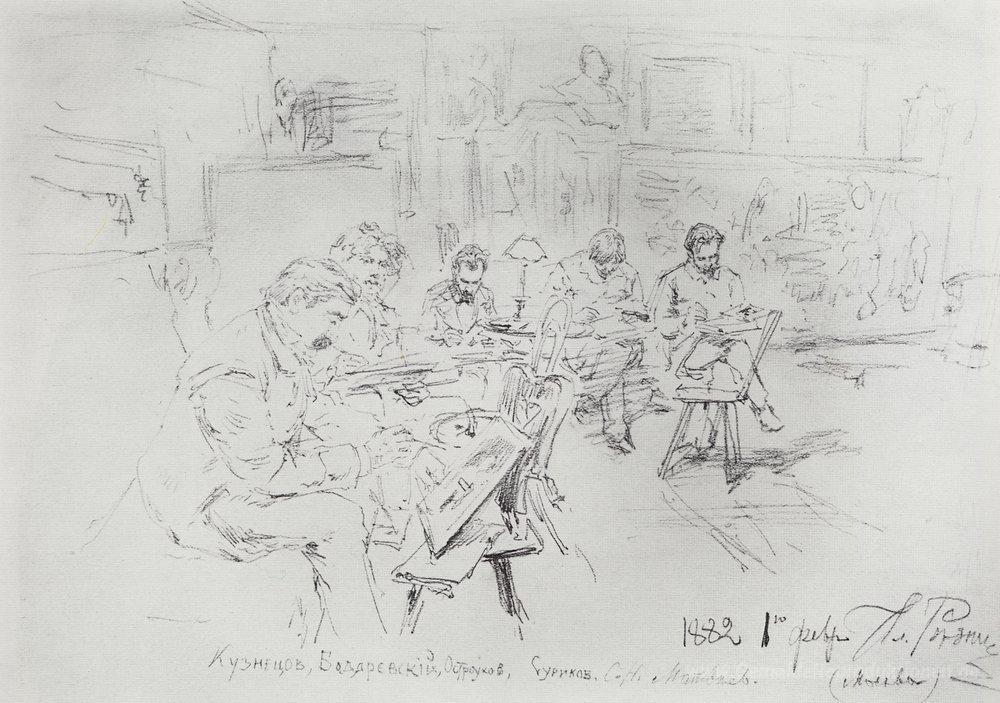 Wir bieten Ihnen eine handgefertigte Reproduktion auf Leinwand des berühmten Kunstwerks 'In Repins Studio. Abbildung abend.' von Ilya Repin, aus dem Reproduktionsmuseum.