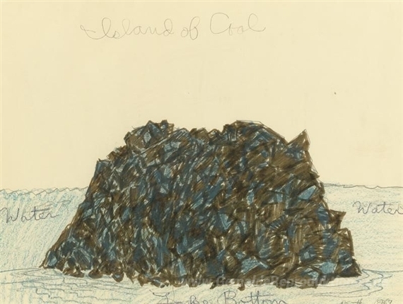 Wir bieten Ihnen eine handgefertigte Reproduktion auf Leinwand des berühmten Kunstwerks 'Island of Coal' von Robert Smithson, aus dem Reproduktionsmuseum.