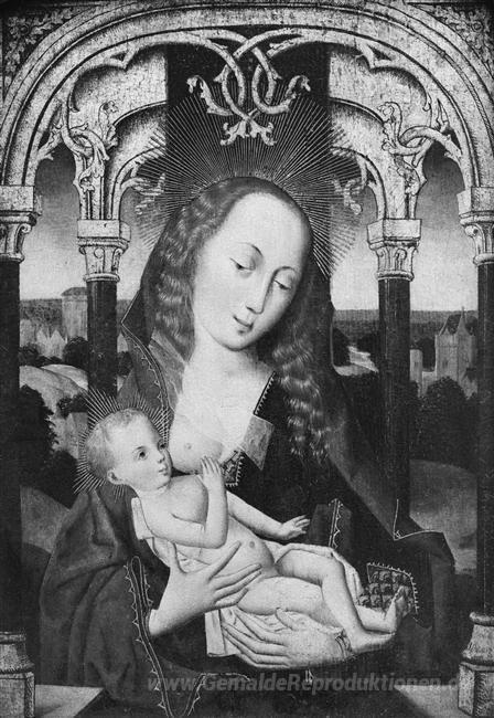 Wir bieten Ihnen eine handgefertigte Reproduktion auf Leinwand des berühmten Kunstwerks 'Jungfrau und Kind' von Rogier van der Weyden, aus dem Reproduktionsmuseum.