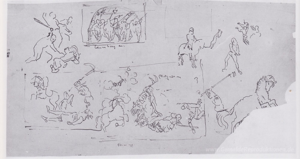 Wir bieten Ihnen eine handgefertigte Reproduktion auf Leinwand des berühmten Kunstwerks 'Kampfszenen' von Ferdinand Hodler, aus dem Reproduktionsmuseum.