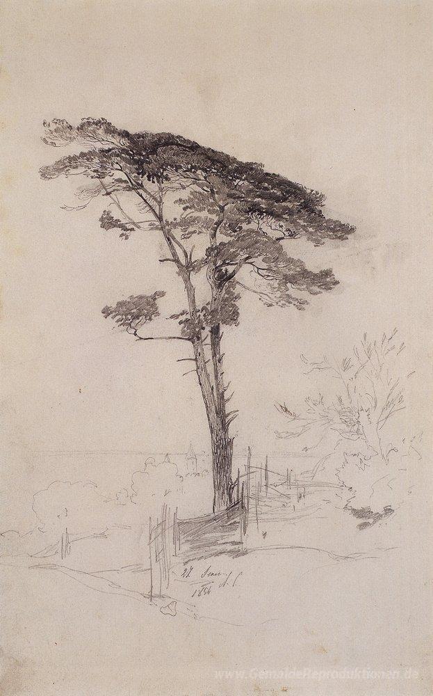 Wir bieten Ihnen eine handgefertigte Reproduktion auf Leinwand des berühmten Kunstwerks 'Kiefer' von Aleksey Savrasov, aus dem Reproduktionsmuseum.