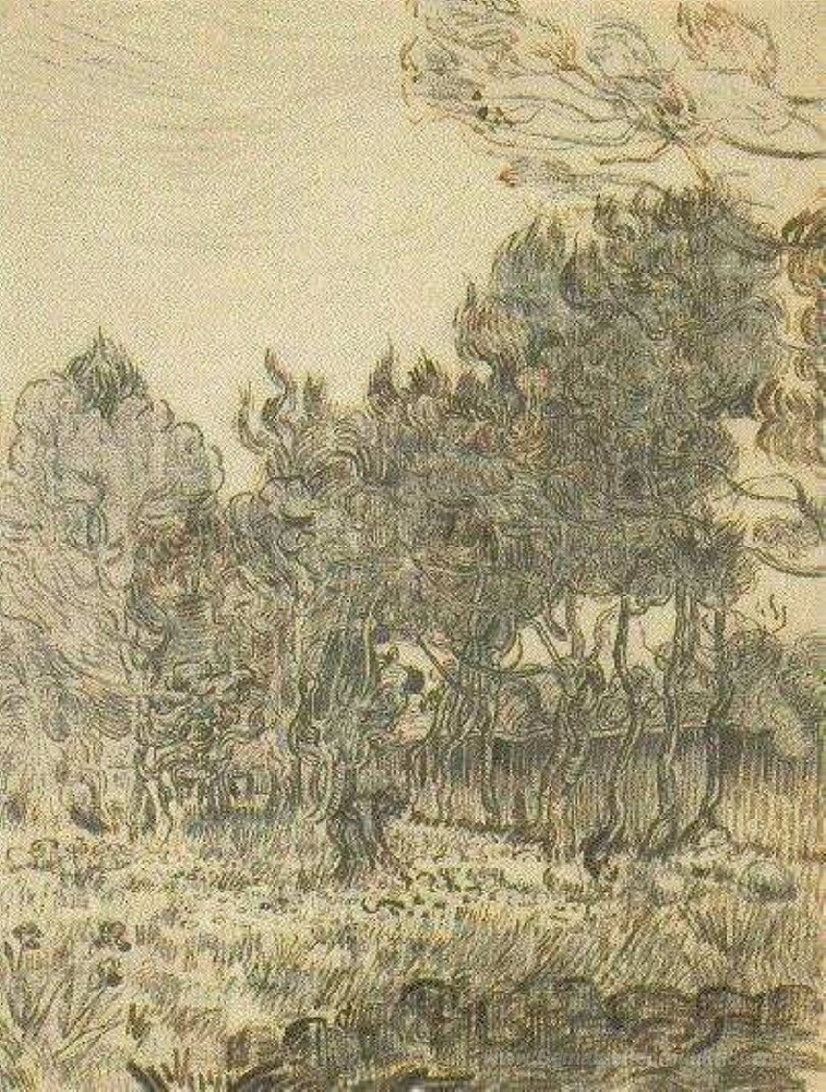 Wir bieten Ihnen eine handgefertigte Reproduktion auf Leinwand des berühmten Kunstwerks 'Kiefern in der Nähe der Wand des Asyl' von Vincent van Gogh, aus dem Reproduktionsmuseum.