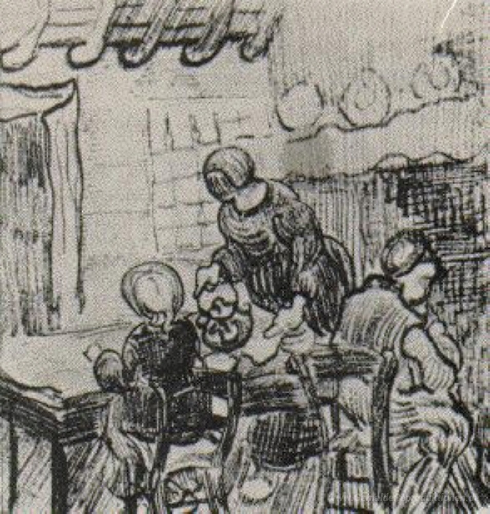 Wir bieten Ihnen eine handgefertigte Reproduktion auf Leinwand des berühmten Kunstwerks 'Kind und Frau gießt Kaffee' von Vincent van Gogh, aus dem Reproduktionsmuseum.