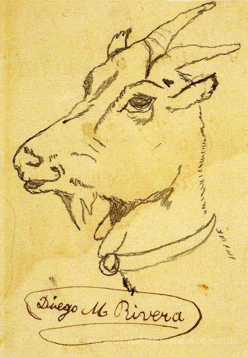 Wir bieten Ihnen eine handgefertigte Reproduktion auf Leinwand des berühmten Kunstwerks 'Kopf einer Ziege' von Diego Rivera, aus dem Reproduktionsmuseum.