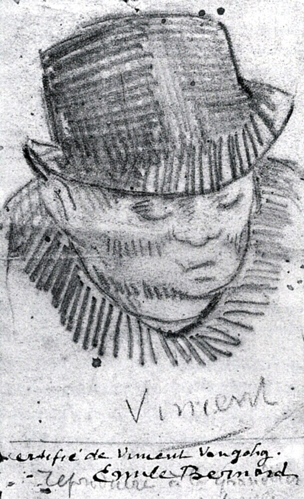 Wir bieten Ihnen eine handgefertigte Reproduktion auf Leinwand des berühmten Kunstwerks 'Kopf eines Mannes mit Hut' von Vincent van Gogh, aus dem Reproduktionsmuseum.