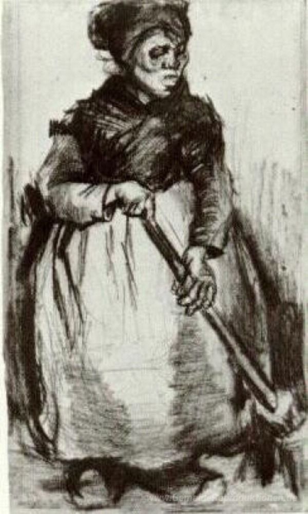 Wir bieten Ihnen eine handgefertigte Reproduktion auf Leinwand des berühmten Kunstwerks 'Ländliche Frau mit Besen' von Vincent van Gogh, aus dem Reproduktionsmuseum.