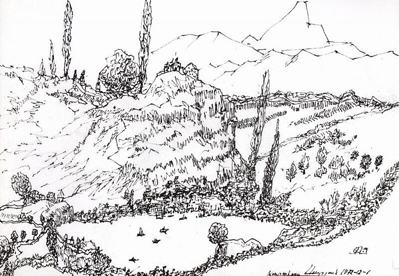 Wir bieten Ihnen eine handgefertigte Reproduktion auf Leinwand des berühmten Kunstwerks 'Landschaft Armeniens' von Martiros Saryan, aus dem Reproduktionsmuseum.