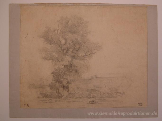 Wir bieten Ihnen eine handgefertigte Reproduktion auf Leinwand des berühmten Kunstwerks 'Landschaft' von Theodore Rousseau, aus dem Reproduktionsmuseum.