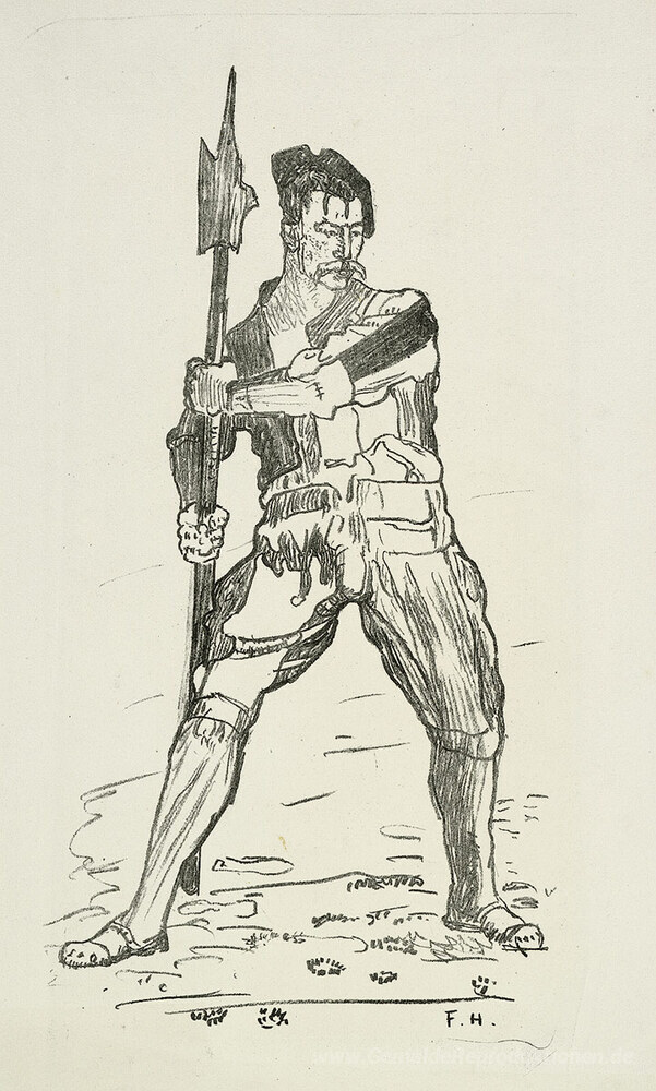 Wir bieten Ihnen eine handgefertigte Reproduktion auf Leinwand des berühmten Kunstwerks 'Landsknecht mit Hellebarde' von Ferdinand Hodler, aus dem Reproduktionsmuseum.