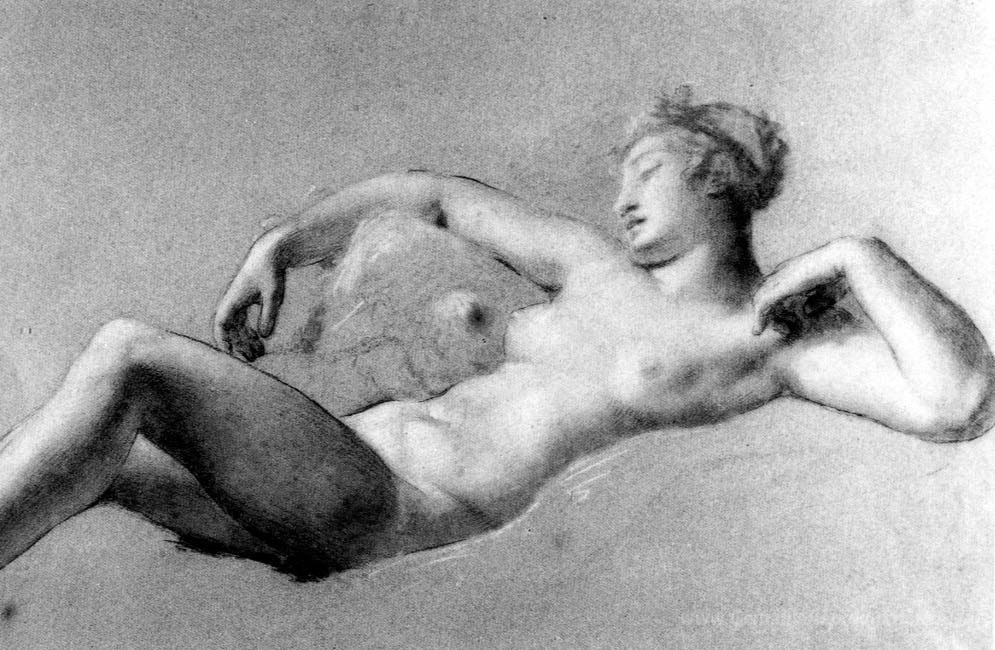 Wir bieten Ihnen eine handgefertigte Reproduktion auf Leinwand des berühmten Kunstwerks 'Liegender weiblicher Akt Liegender' von Pierre-Paul Prud'hon, aus dem Reproduktionsmuseum.