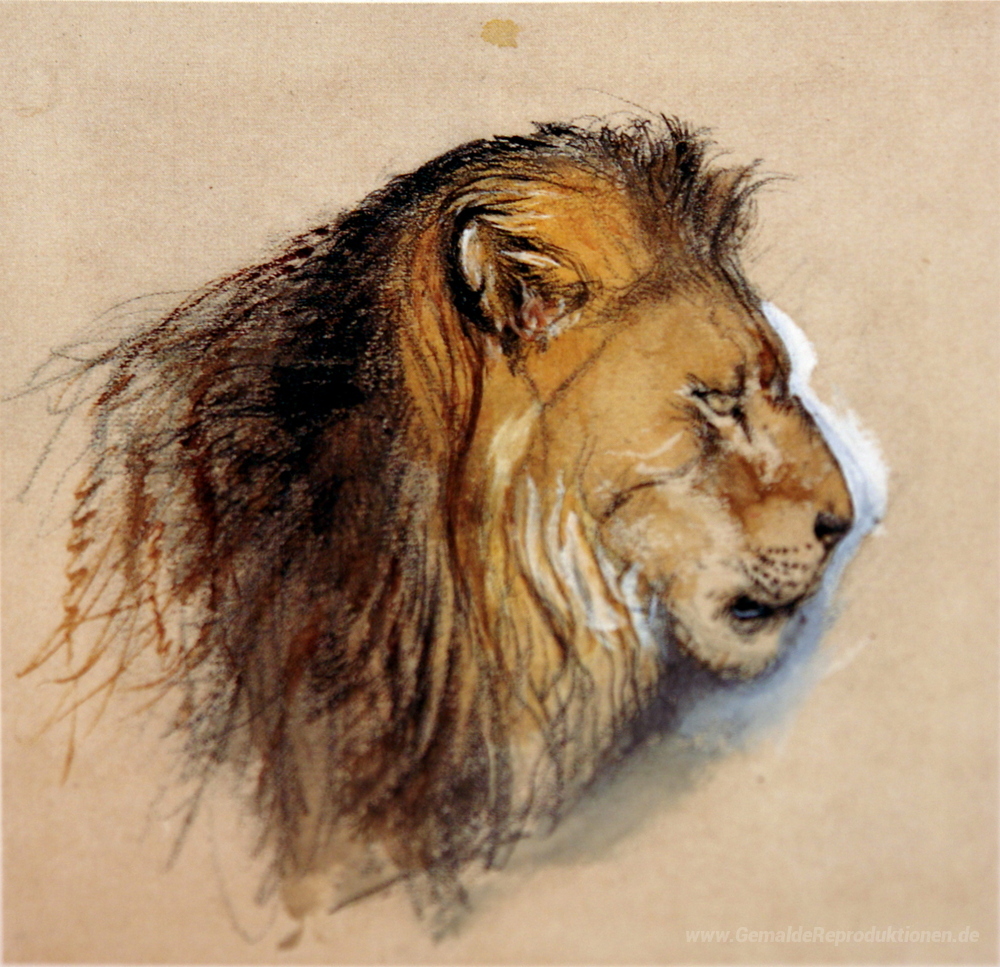 Wir bieten Ihnen eine handgefertigte Reproduktion auf Leinwand des berühmten Kunstwerks 'Lion-Profile aus dem Leben' von John Ruskin, aus dem Reproduktionsmuseum.
