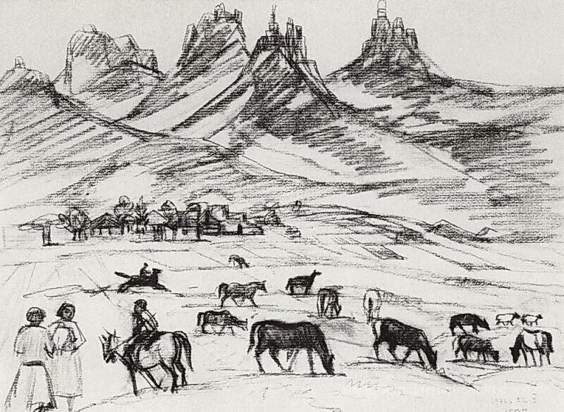 Wir bieten Ihnen eine handgefertigte Reproduktion auf Leinwand des berühmten Kunstwerks 'Lori' von Martiros Saryan, aus dem Reproduktionsmuseum.