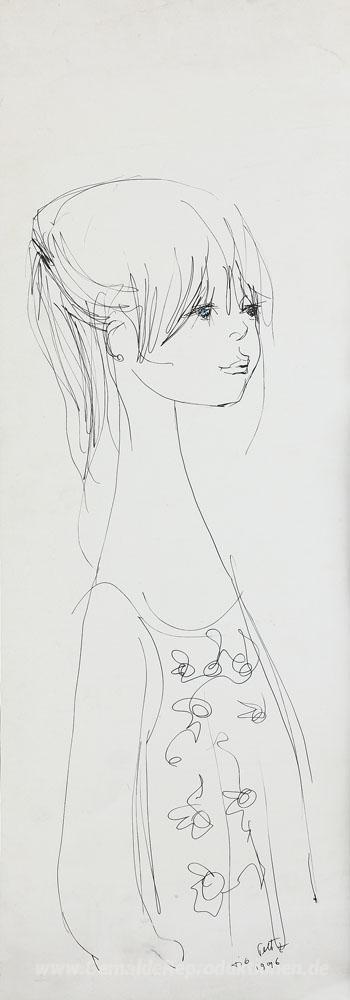 Wir bieten Ihnen eine handgefertigte Reproduktion auf Leinwand des berühmten Kunstwerks 'Mädchen mit blauen Augen' von Tia Peltz, aus dem Reproduktionsmuseum.