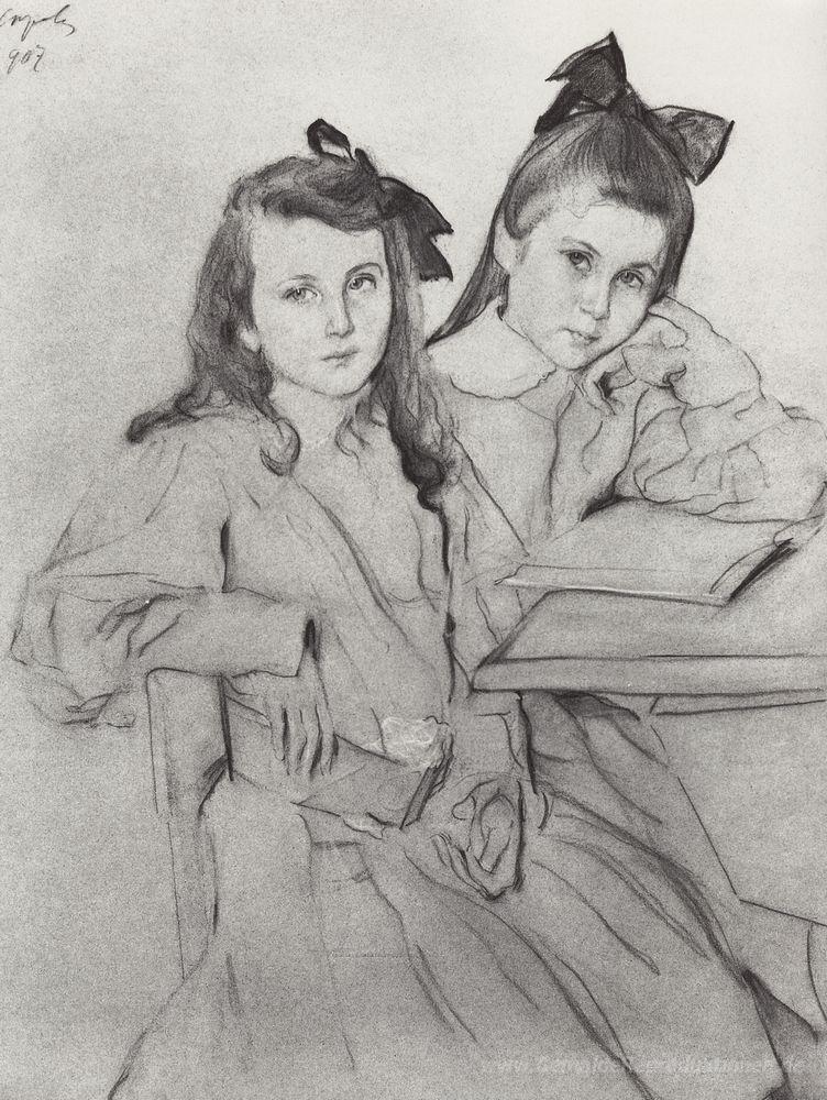 Wir bieten Ihnen eine handgefertigte Reproduktion auf Leinwand des berühmten Kunstwerks 'Mädchen N.A. Kasyanova und T. A. Kasyanova' von Valentin Serov, aus dem Reproduktionsmuseum.