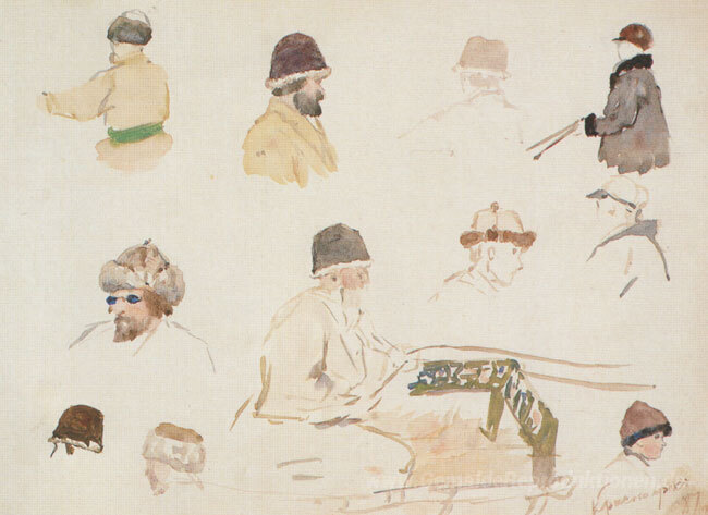 Wir bieten Ihnen eine handgefertigte Reproduktion auf Leinwand des berühmten Kunstwerks 'Männliche Köpfe mit Wintermützen' von Vasily Surikov, aus dem Reproduktionsmuseum.