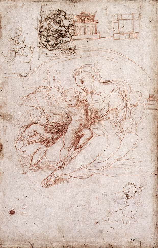 Wir bieten Ihnen eine handgefertigte Reproduktion auf Leinwand des berühmten Kunstwerks 'Madonna Studies' von Raphael, aus dem Reproduktionsmuseum.