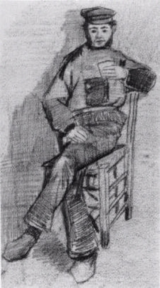 Wir bieten Ihnen eine handgefertigte Reproduktion auf Leinwand des berühmten Kunstwerks 'Man sitzt mit einem Glas in der Hand' von Vincent van Gogh, aus dem Reproduktionsmuseum.