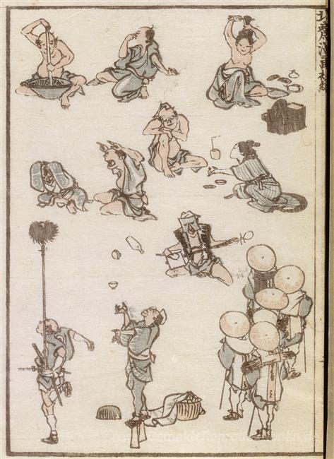 Wir bieten Ihnen eine handgefertigte Reproduktion auf Leinwand des berühmten Kunstwerks 'Manga' von Katsushika Hokusai, aus dem Reproduktionsmuseum.