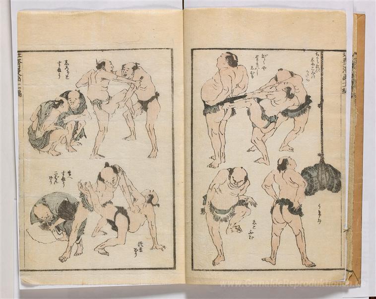 Wir bieten Ihnen eine handgefertigte Reproduktion auf Leinwand des berühmten Kunstwerks 'Manga' von Katsushika Hokusai, aus dem Reproduktionsmuseum.