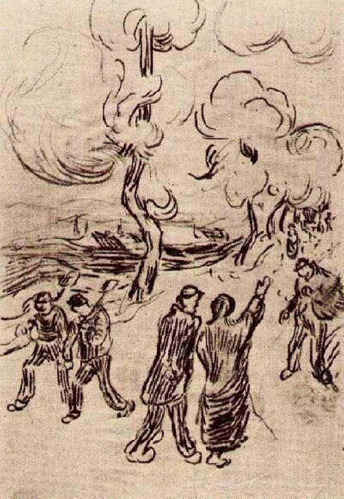 Wir bieten Ihnen eine handgefertigte Reproduktion auf Leinwand des berühmten Kunstwerks 'Mehrere Figuren auf einer Straße mit Bäumen' von Vincent van Gogh, aus dem Reproduktionsmuseum.
