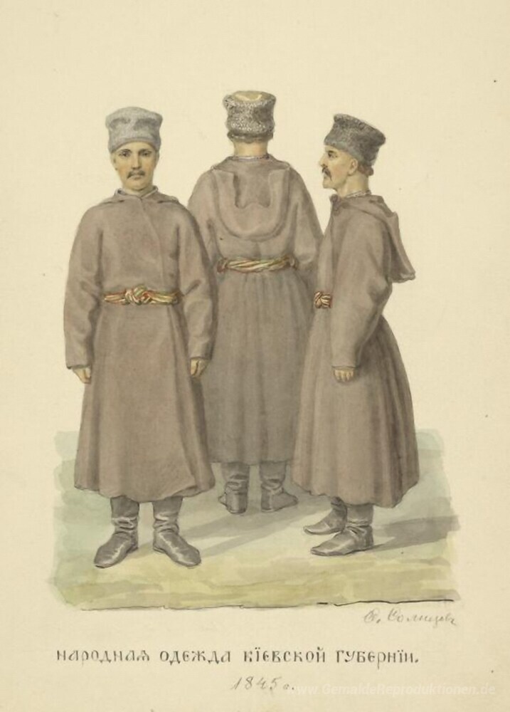 Wir bieten Ihnen eine handgefertigte Reproduktion auf Leinwand des berühmten Kunstwerks 'Menschen kleidet die Provinz von Kiew' von Fyodor Solntsev, aus dem Reproduktionsmuseum.