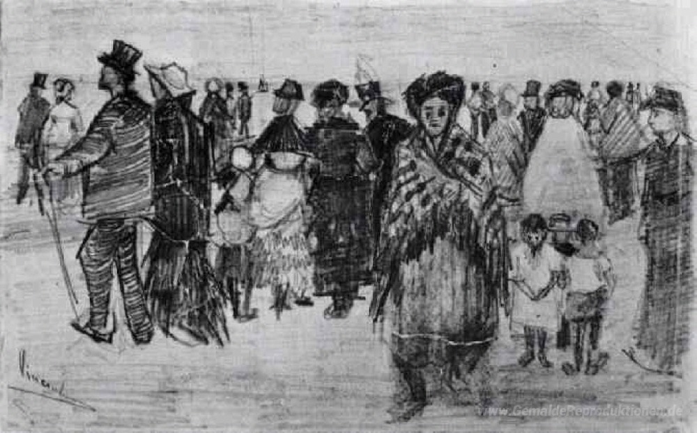 Wir bieten Ihnen eine handgefertigte Reproduktion auf Leinwand des berühmten Kunstwerks 'Menschen zu Fuß am Strand' von Vincent van Gogh, aus dem Reproduktionsmuseum.