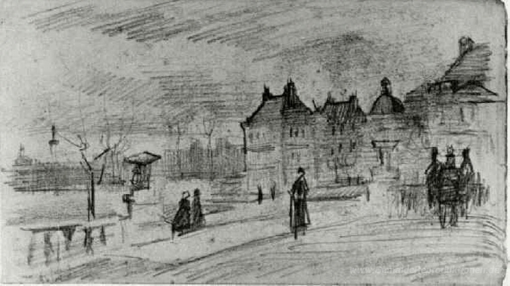 Wir bieten Ihnen eine handgefertigte Reproduktion auf Leinwand des berühmten Kunstwerks 'Menschen zu Fuß an der Palais du Luxemburg' von Vincent van Gogh, aus dem Reproduktionsmuseum.