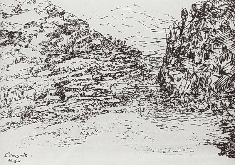 Wir bieten Ihnen eine handgefertigte Reproduktion auf Leinwand des berühmten Kunstwerks 'Mountain river' von Martiros Saryan, aus dem Reproduktionsmuseum.