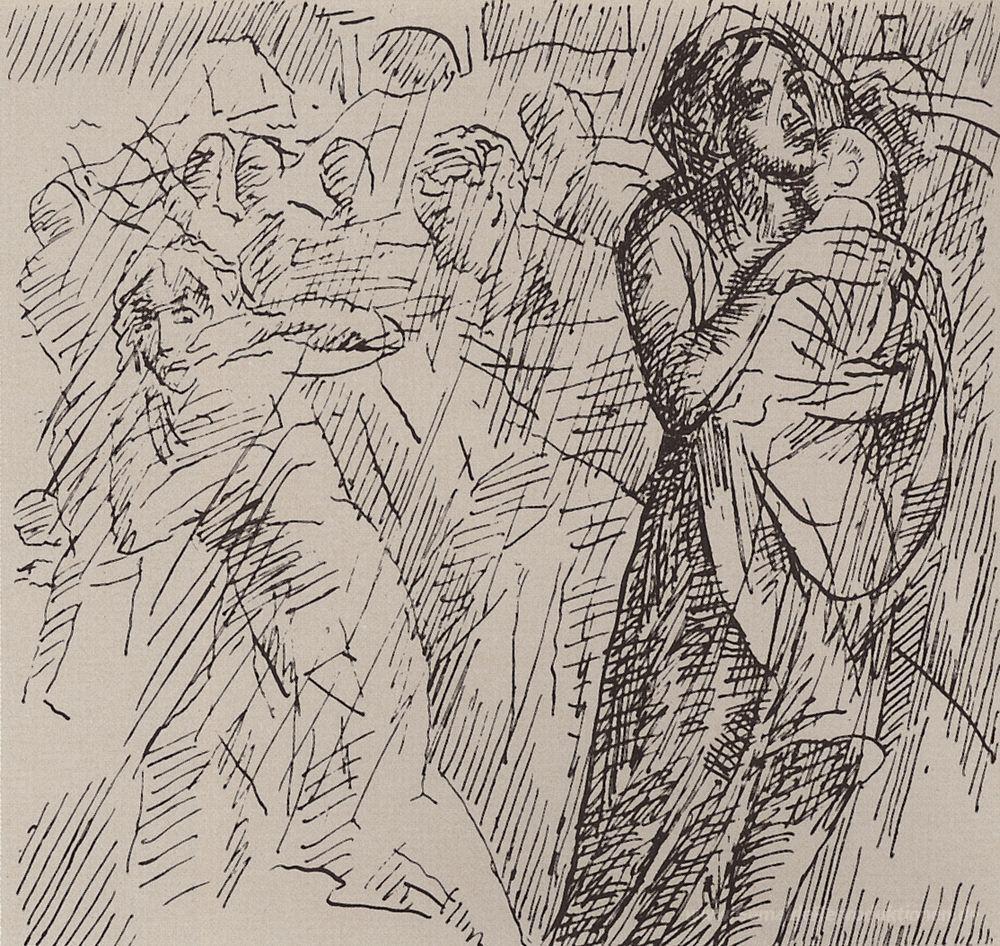 Wir bieten Ihnen eine handgefertigte Reproduktion auf Leinwand des berühmten Kunstwerks 'Mutter, Kind Spar' von Kuzma Petrov-Vodkin, aus dem Reproduktionsmuseum.