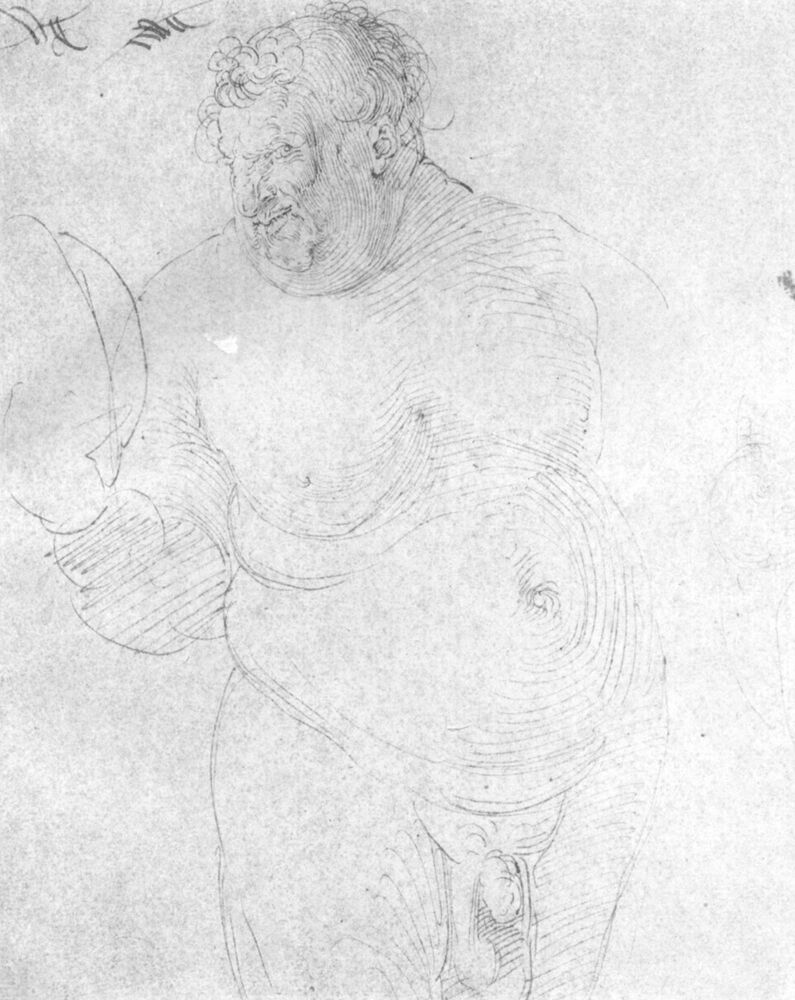 Wir bieten Ihnen eine handgefertigte Reproduktion auf Leinwand des berühmten Kunstwerks 'Nackter Mann mit Spiegel' von Albrecht Durer, aus dem Reproduktionsmuseum.