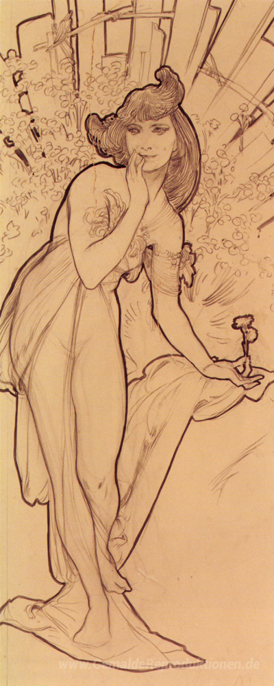 Wir bieten Ihnen eine handgefertigte Reproduktion auf Leinwand des berühmten Kunstwerks 'Nelke' von Alphonse Mucha, aus dem Reproduktionsmuseum.