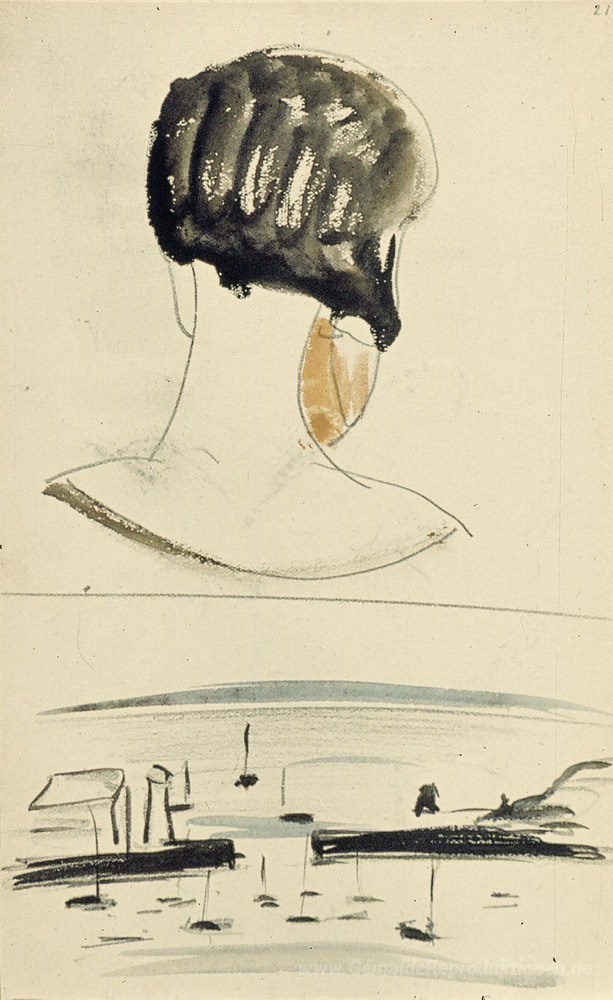 Wir bieten Ihnen eine handgefertigte Reproduktion auf Leinwand des berühmten Kunstwerks 'Nelly van Doesburg von hinten gesehen, und eine Hafenszene' von Theo van Doesburg, aus dem Reproduktionsmuseum.