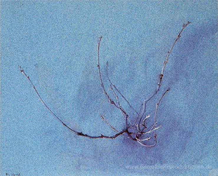 Wir bieten Ihnen eine handgefertigte Reproduktion auf Leinwand des berühmten Kunstwerks 'Oak Spray im Winter' von John Ruskin, aus dem Reproduktionsmuseum.