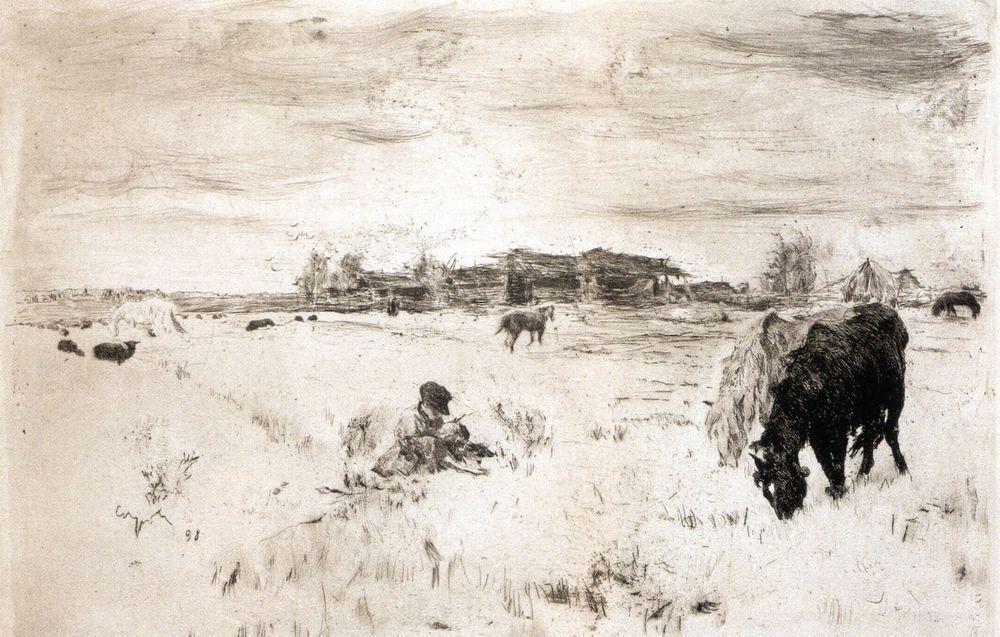 Wir bieten Ihnen eine handgefertigte Reproduktion auf Leinwand des berühmten Kunstwerks 'Oktober' von Valentin Serov, aus dem Reproduktionsmuseum.