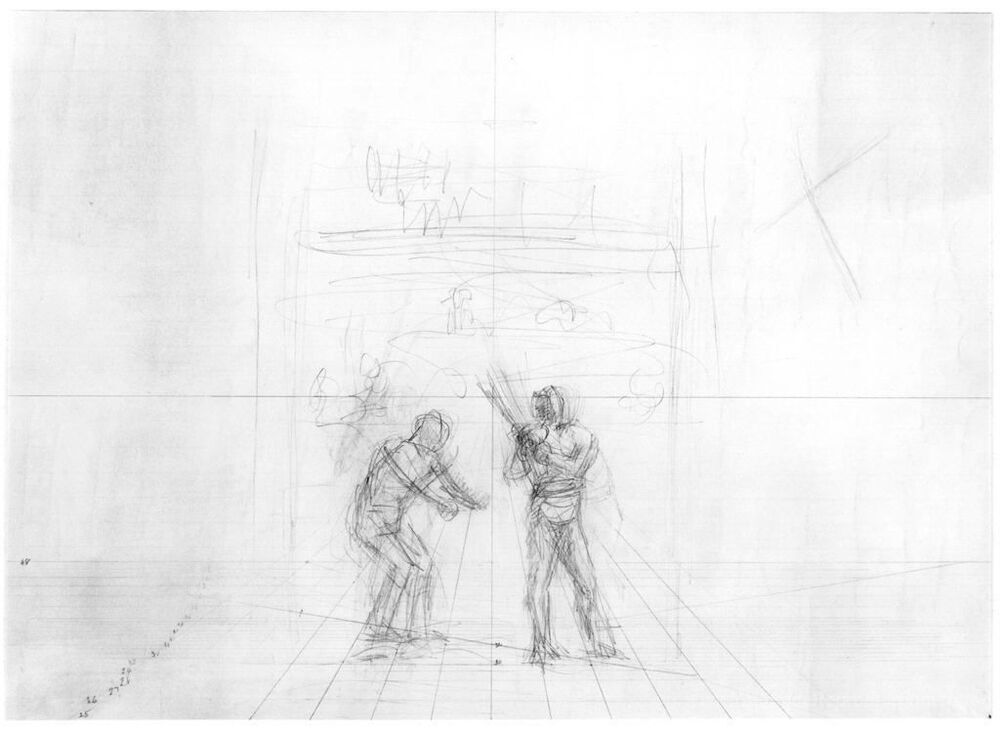 Wir bieten Ihnen eine handgefertigte Reproduktion auf Leinwand des berühmten Kunstwerks 'Perspektivische Zeichnung für Baseball-Spieler üben' von Thomas Eakins, aus dem Reproduktionsmuseum.