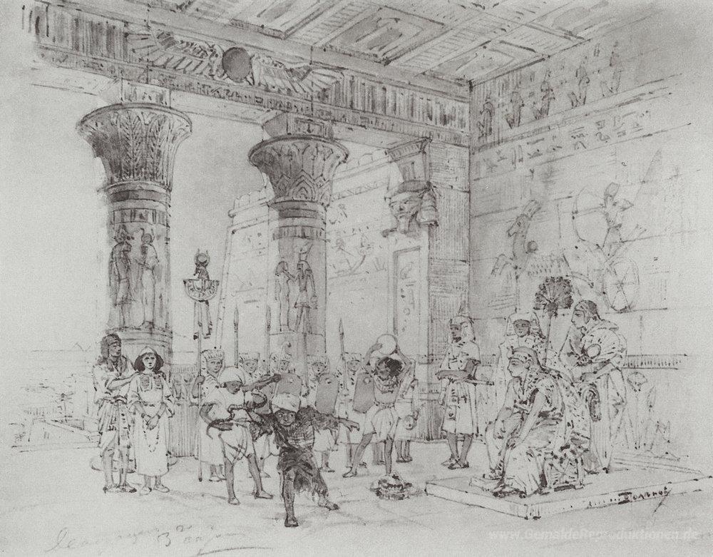 Wir bieten Ihnen eine handgefertigte Reproduktion auf Leinwand des berühmten Kunstwerks 'Pharao Palace' von Vasily Polenov, aus dem Reproduktionsmuseum.
