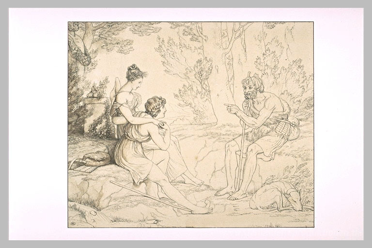 Wir bieten Ihnen eine handgefertigte Reproduktion auf Leinwand des berühmten Kunstwerks 'Philetus Lehrer Daphnis und Chloé' von Pierre-Narcisse Guerin, aus dem Reproduktionsmuseum.