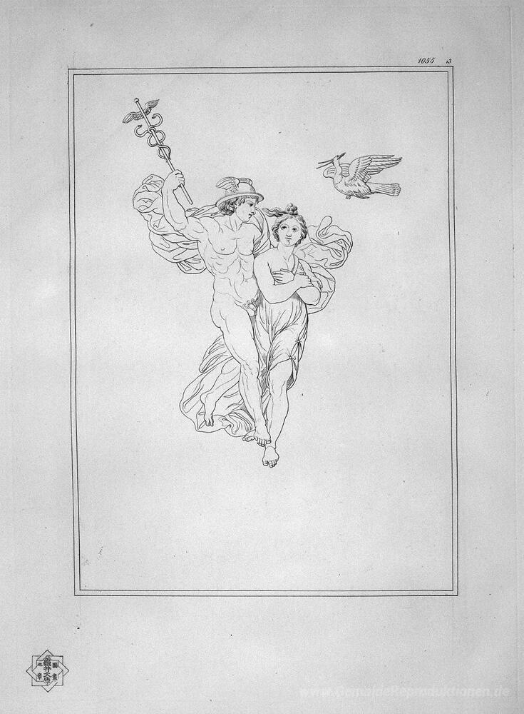 Wir bieten Ihnen eine handgefertigte Reproduktion auf Leinwand des berühmten Kunstwerks 'Quecksilber und Psyche' von Giovanni Battista Piranesi, aus dem Reproduktionsmuseum.
